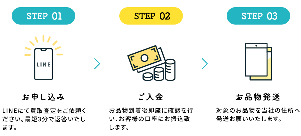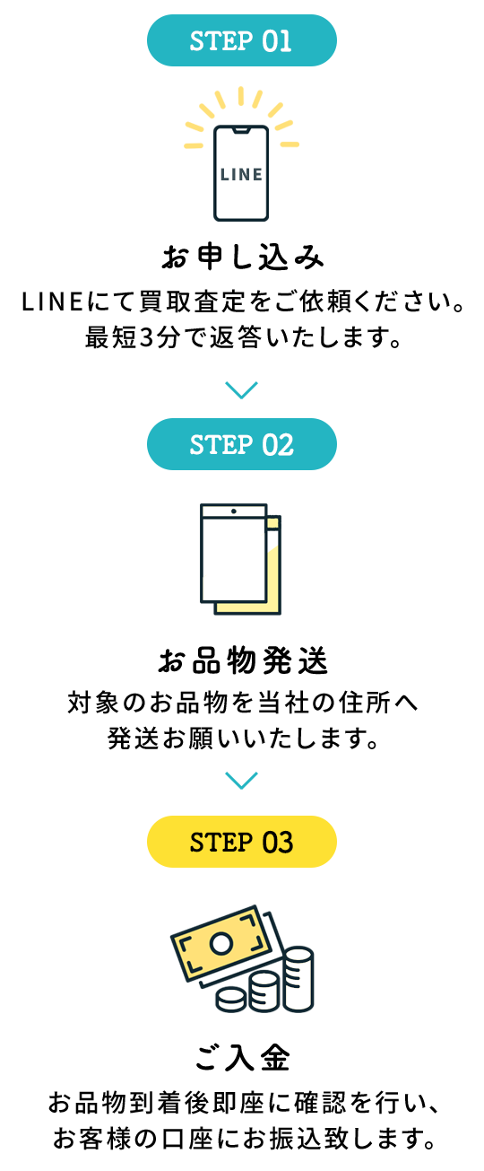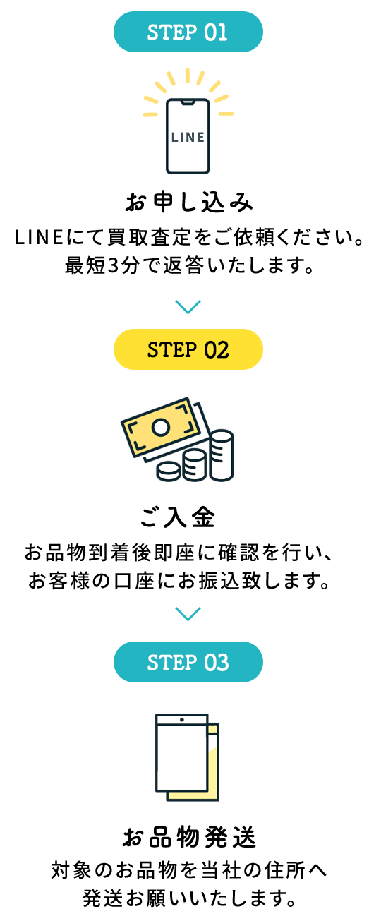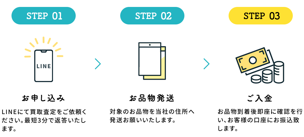 必要な情報を送信するだけで即日に査定結果と買取金額をご案内いたします。
